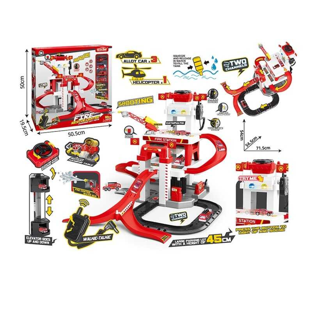 • Трек 660 S-21 (6) 53 елементи, 3 металопластикові машинки, гелікоптер, звуки, підсвічування, мікрофон, механічний ліфт, водяна пушка, наліпки, інструкція, в коробці