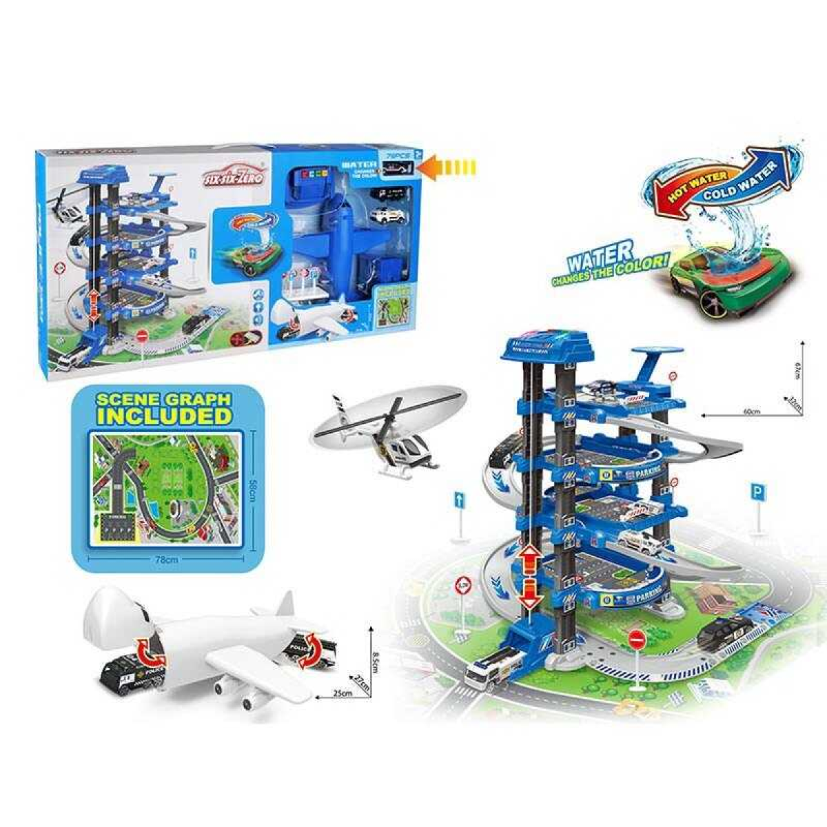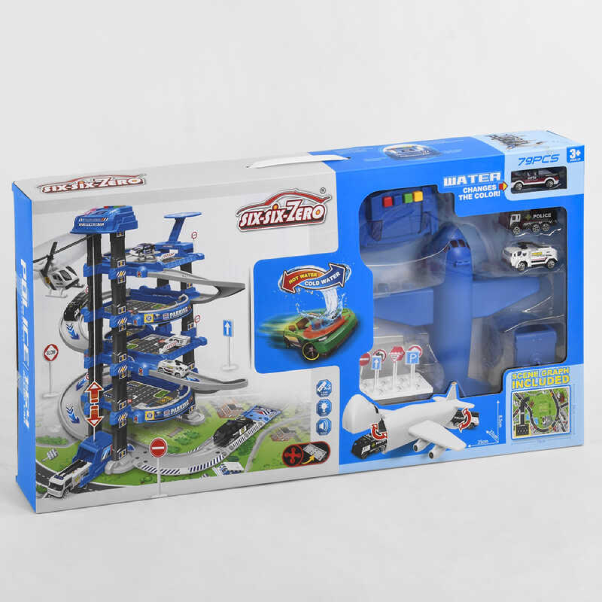 Трек 660 А-300 (10/2) 5 поверхів, 2 машинки, 1 машинка змінює колір, літак, автоматичний підіймач, світло, звук, аксесуари, в коробці