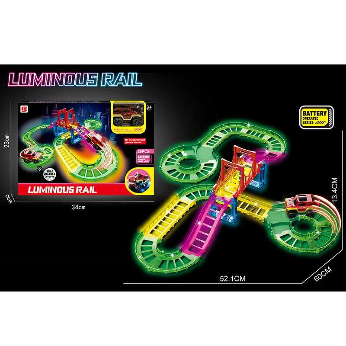 Трек 888-131 (60) люмінесцентний, довжина 60см, 29 деталей, машинка, автоматична їзда, підсвічування фар, в коробці