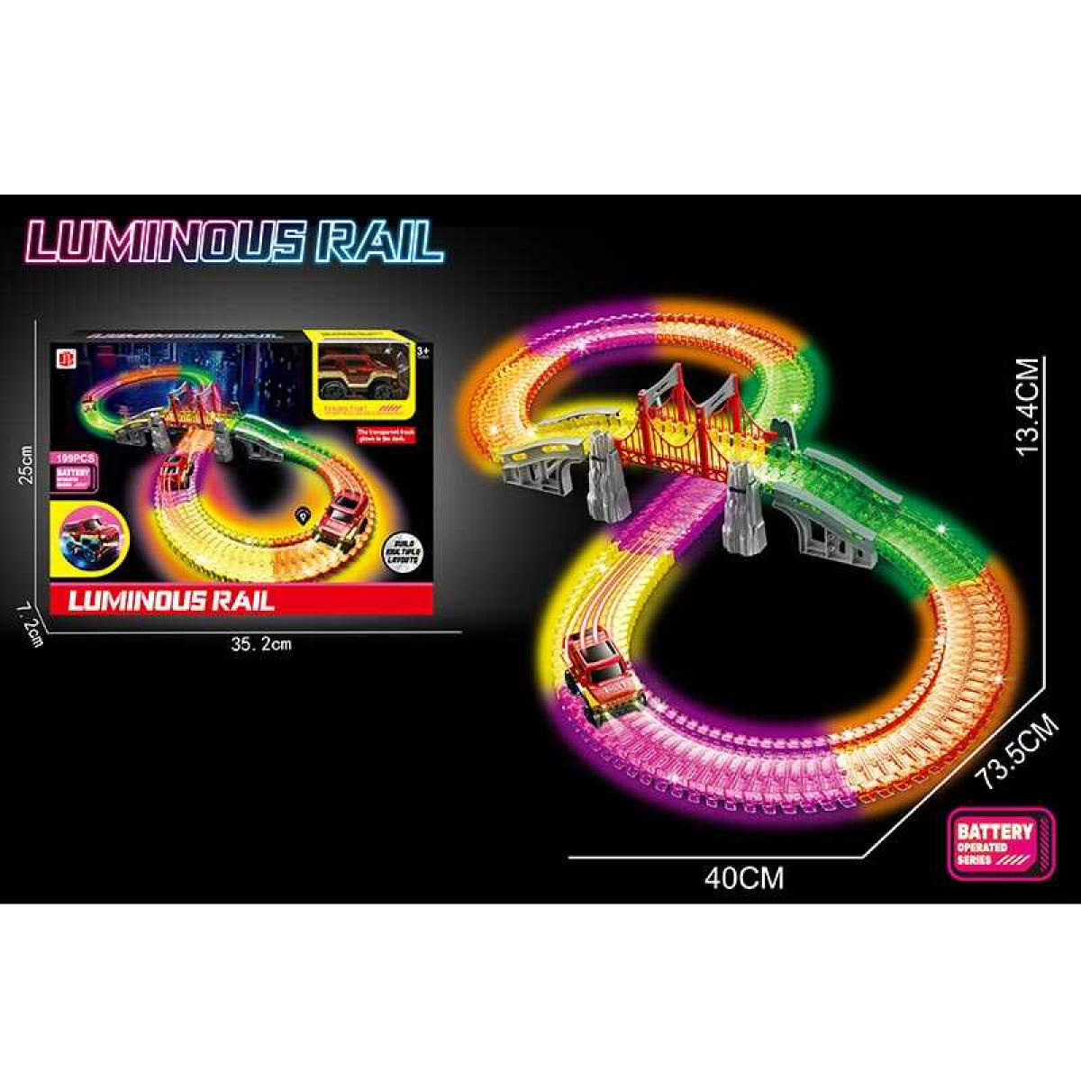 Трек 888-133 (48) люмінесцентний, довжина 74см, 199 деталей, машинка, автоматична їзда, підсвічування фар, в коробці