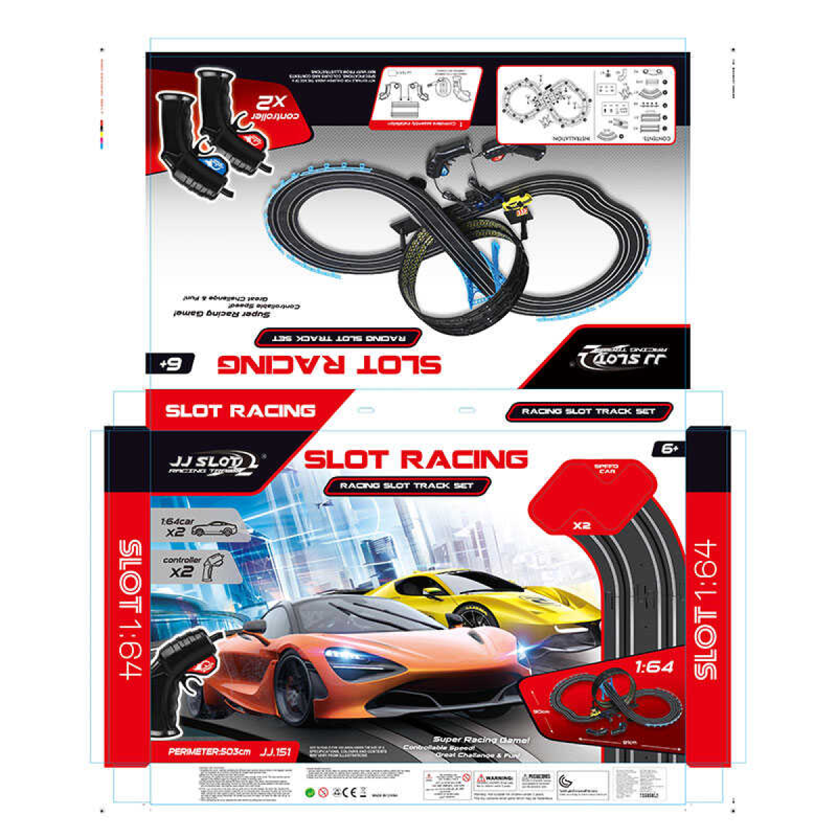 Трек JJ 151-1 (12) 2 машинки, 2 джойстики на батарейках, розмір треку 91х90 см, масштаб 1:64, в коробці