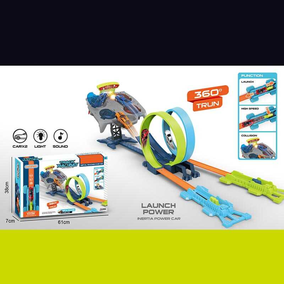• Трек JJ 165 (18) подвійний, 2 металопластикові машинки, інерція, трюкові петлі, “мішень” на батарейках, запускач, в коробці