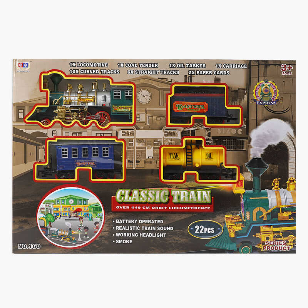 Залізниця 160 (8) 22 елементи, підсвічування, звук, парогенератор, довжина рейок 440см, 3 вагони, в коробці