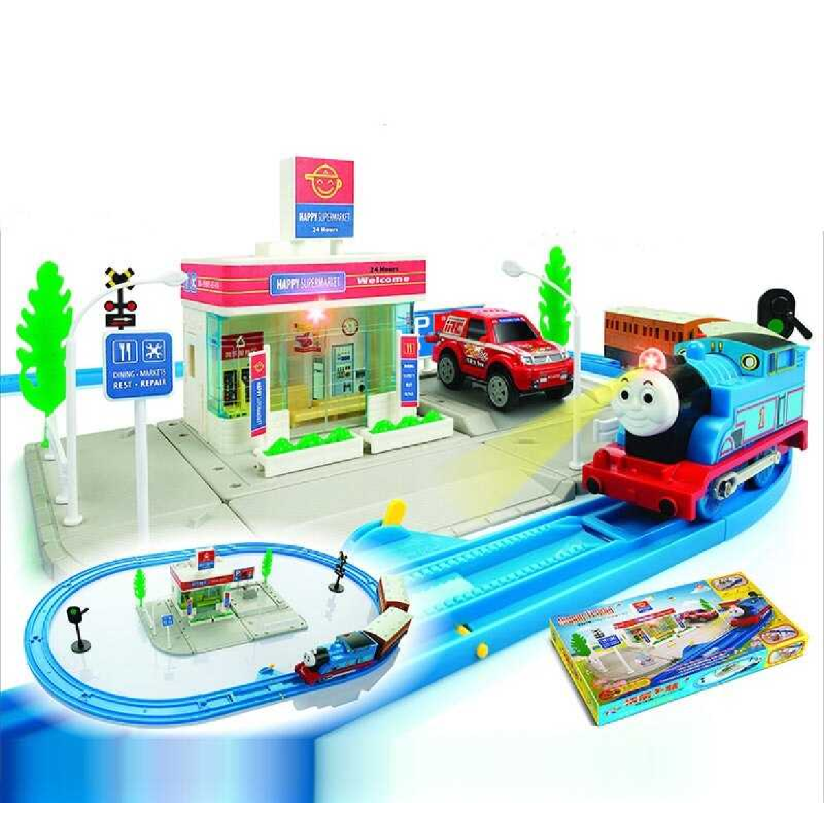 Залызниця 22844 (12/2)локомотив, 2 вагони, колія, підсвічування, музика, декорації, рухомі елементи, на батарейках, наліпки, в коробці