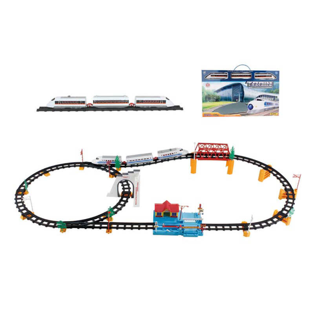 Залізниця 2928 B10 (12) 72 деталі, дорожні знаки, сигнальні ліхтарі, станція, дерева, в коробці