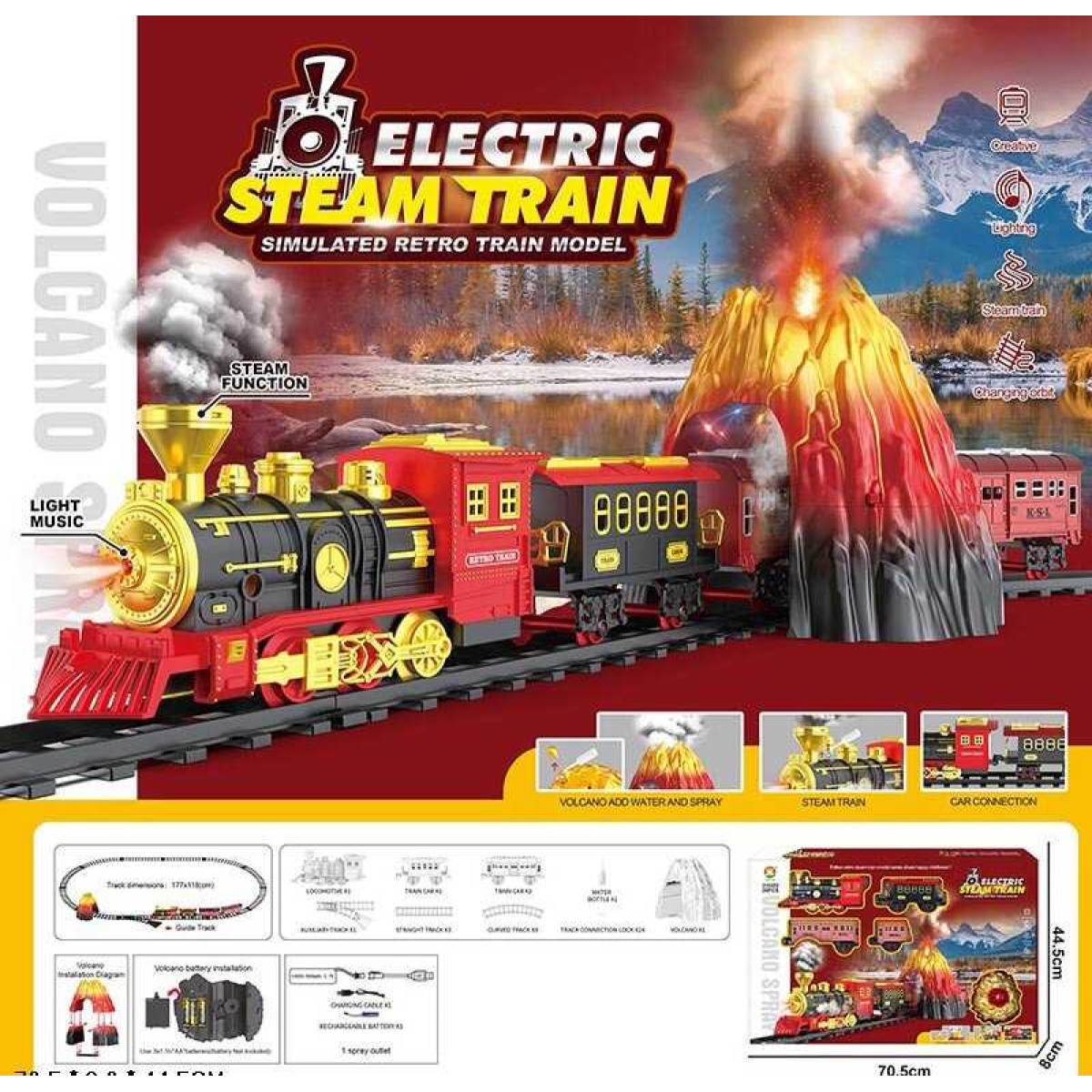 Залізниця 699-51 A (8) 20 елементів, локомотив, 3 вагони, акумулятор 3.7 V, підсвічування, парогенератор, звуки, вулкан, в коробці