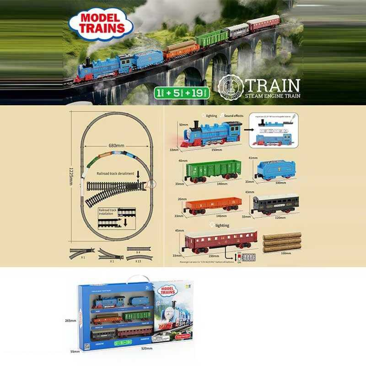 Залізниця HS 8018 B (24) 25 елементів, локомотив, 5 вагонів, звуки, підсвічування, в коробці