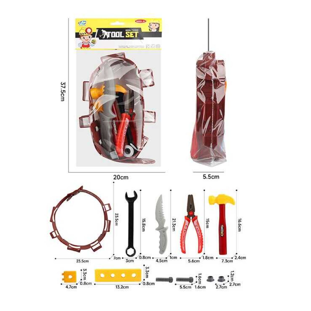 Набір інструментів NH 384 B (120/2) молоток, кусачки, гайковий ключ, ніж, гвинтики, ремінь, в пакеті