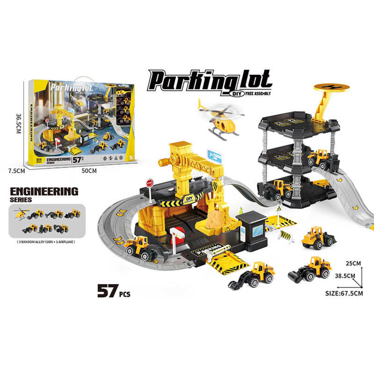 Трек 666-08 (18) 3 металопластикові машинки, гелікоптер, 3 рівні, муляжі оточення, наліпки, в коробці