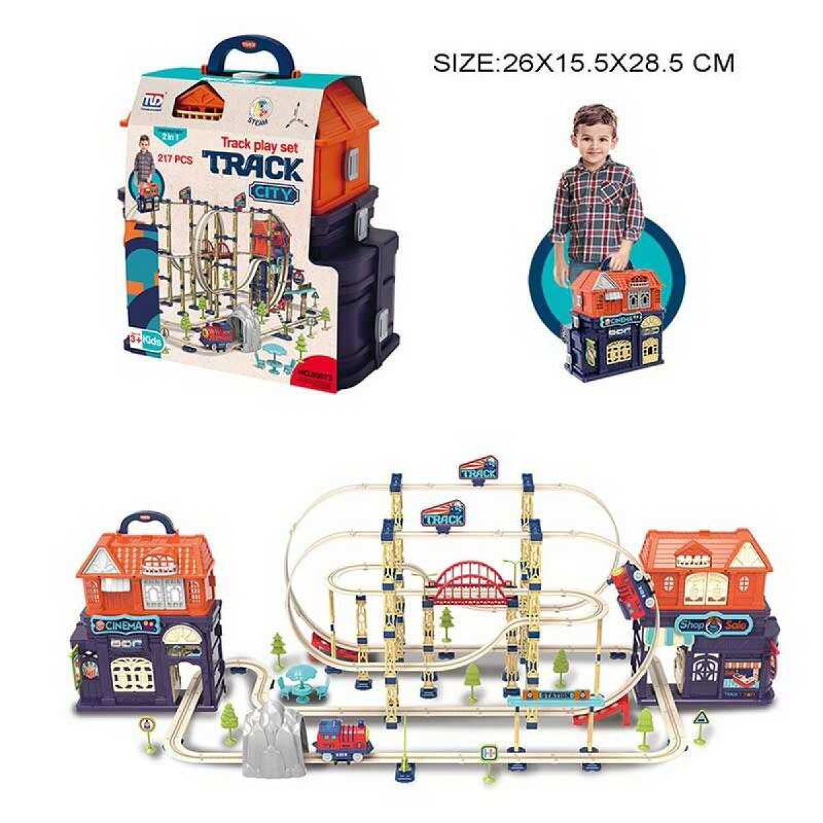 • Трек 89973 (12) потяг, звук, 217 елементів, двері будинку відчиняються, у боксі