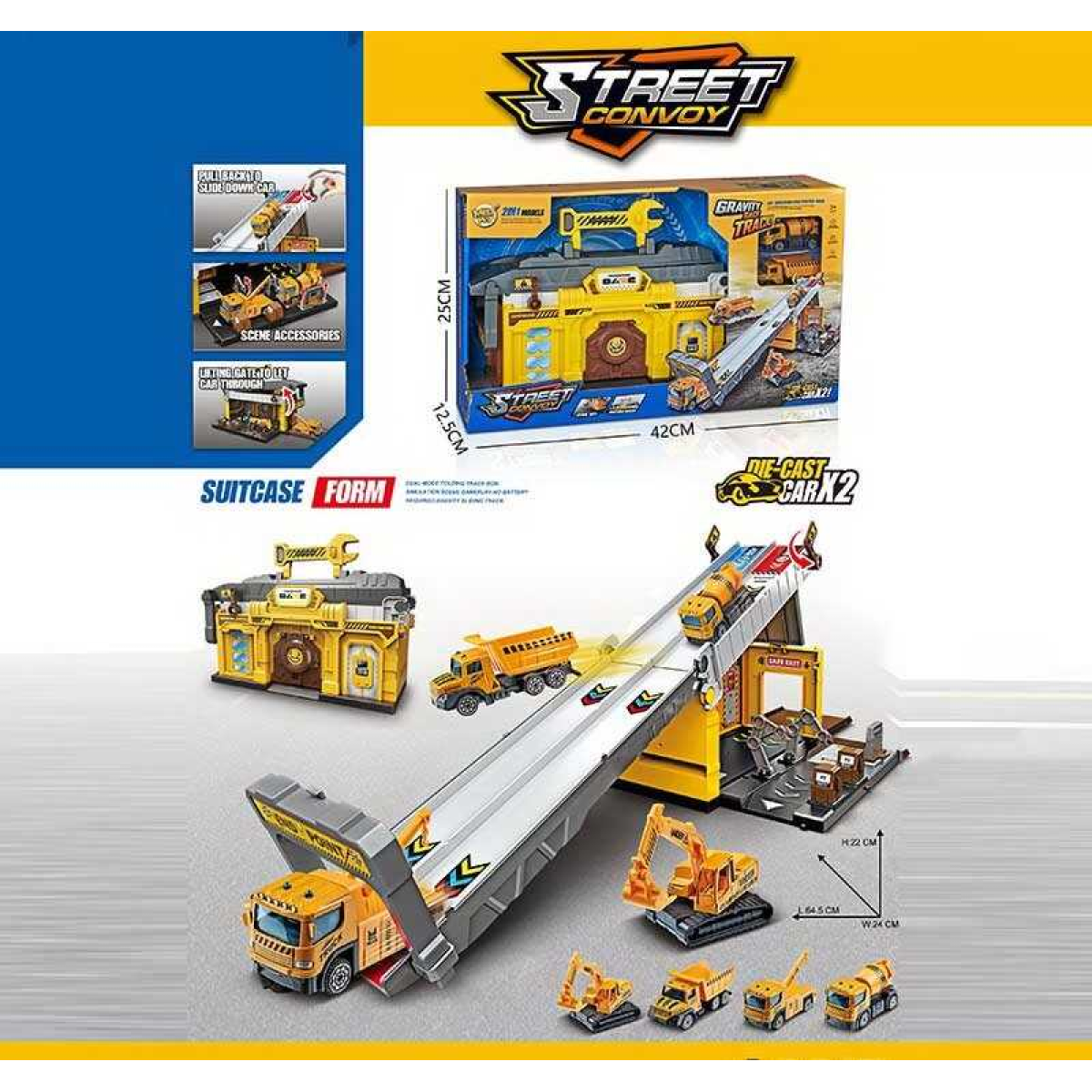 Трек MH 196 (18) запускач, 2 металопластикові машинки, наліпки, в коробці