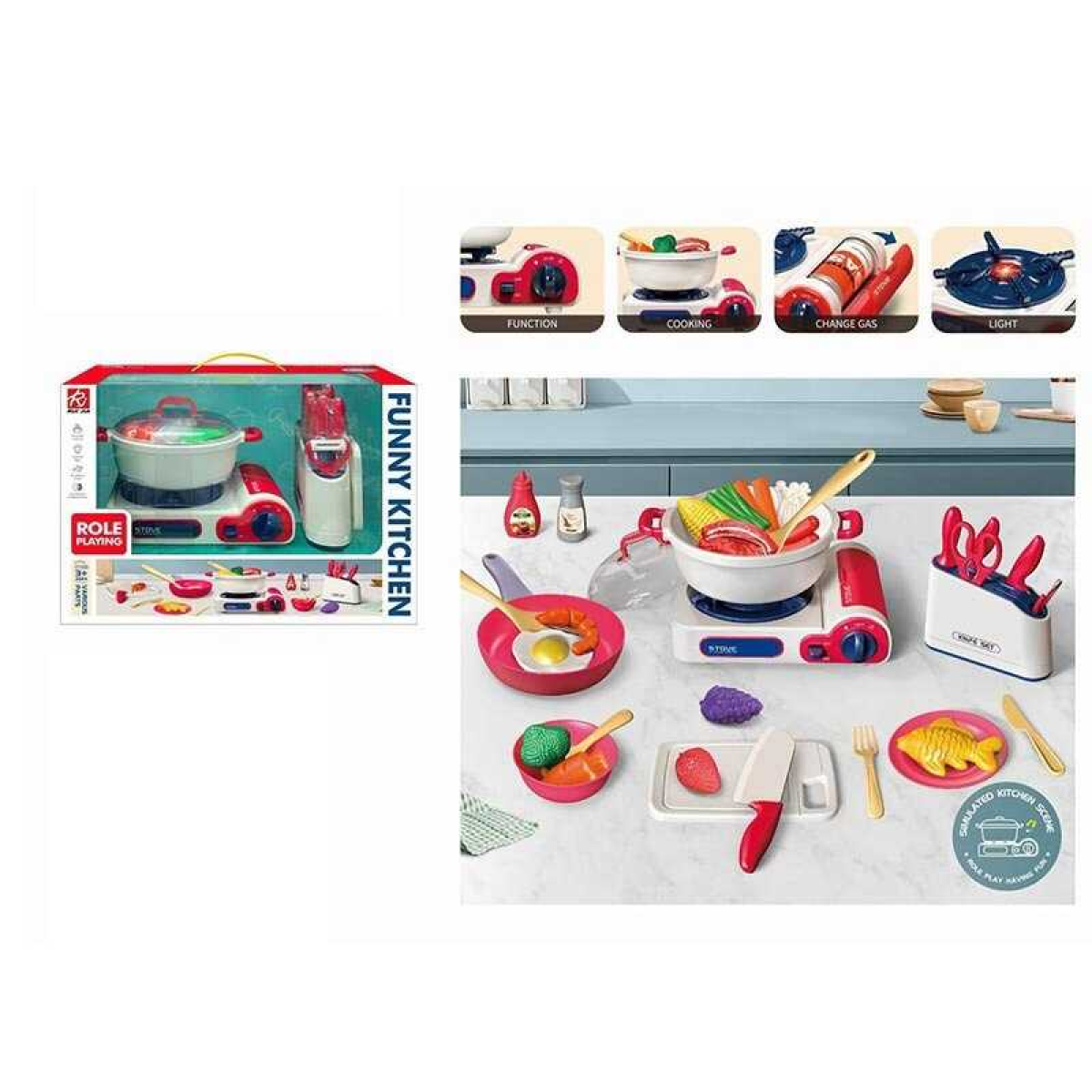 Набір кухаря RJ 5805 A (12) плита, підсвічування, звукові ефекти, мелодії, посуд, харчові продукти, в коробці