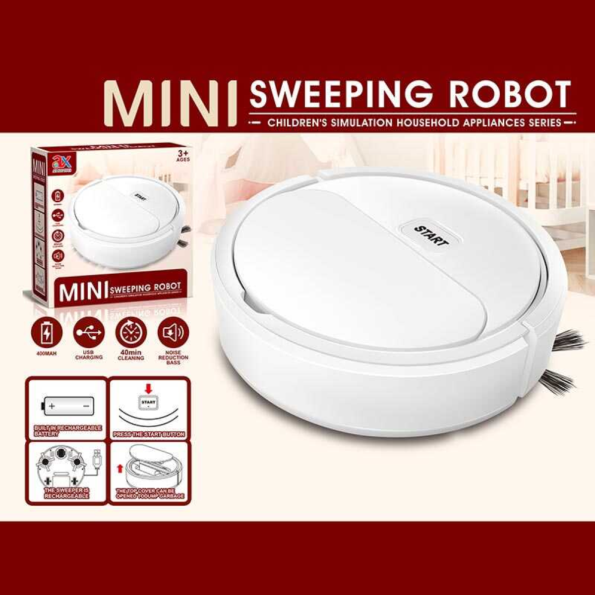 Робот-Пилосос 6838 A (150/2) вбудований акумулятор, автоматичний принцип роботи, USB кабель, фільтр, щіточка, імітація роботи, в коробці