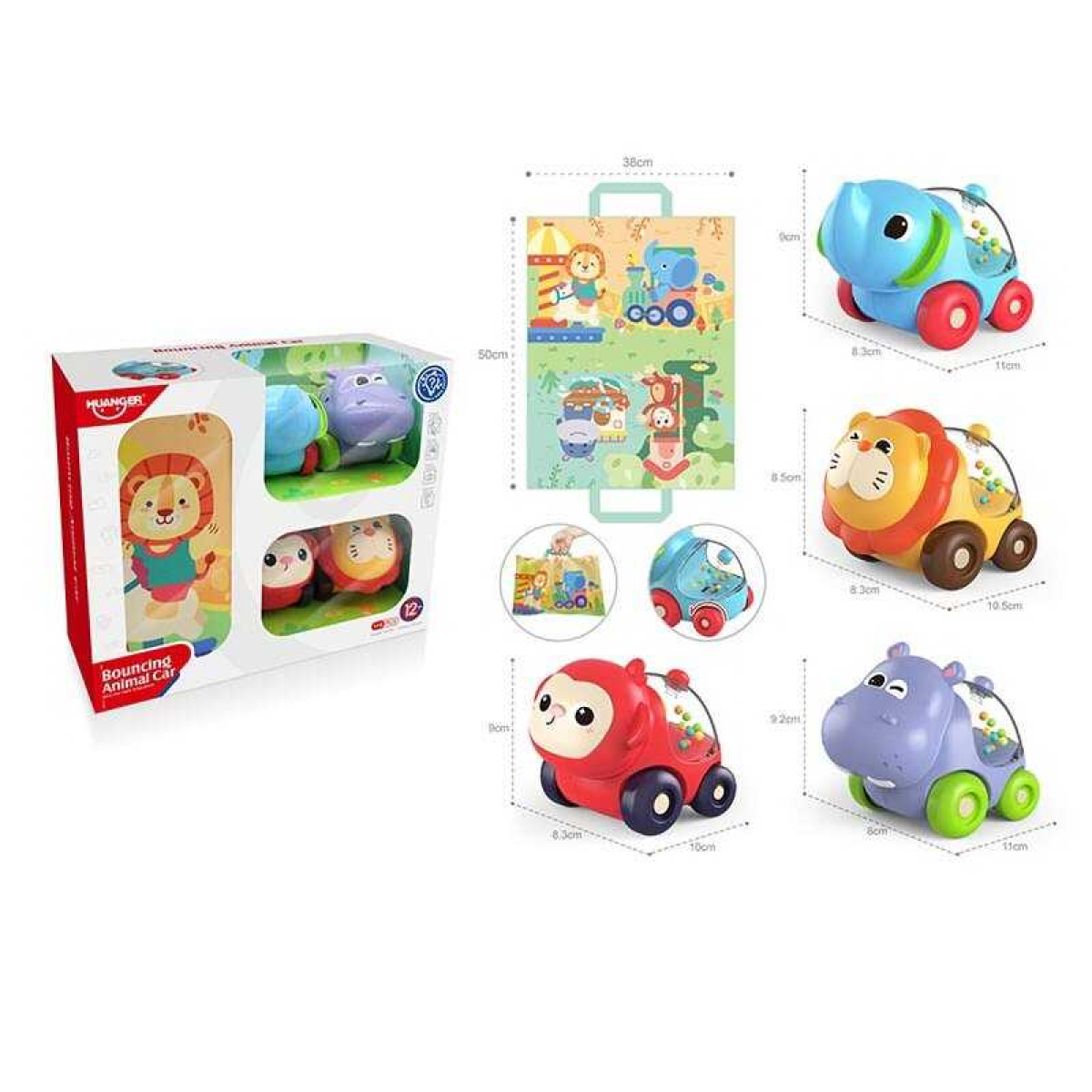 Набір машин HE 8069 (24/2) 4 машини-тварини, килимок-сумка, брязкання, в коробці
