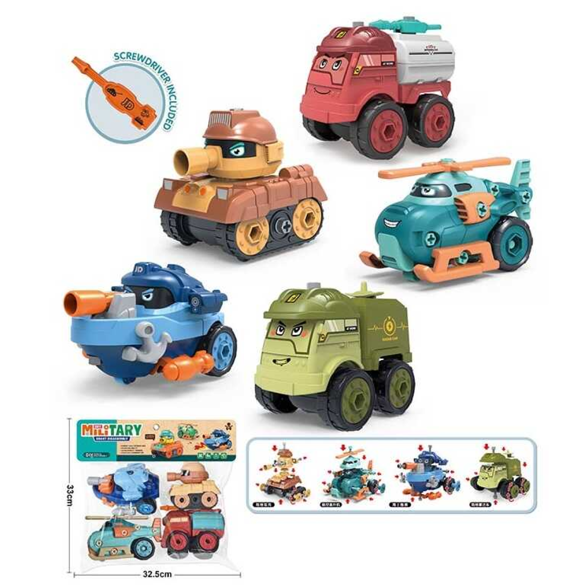 Набір машин JD 1899-19 A (48/2) 4 штуки, конструктор, військова техника, у пакеті