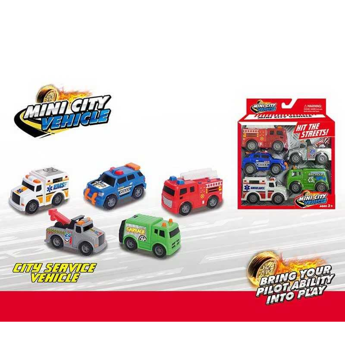 Набір машин MY 102 (48/2) 5 штук, пожежна машина, сміттєвоз, евакуатор, поліційна машина, швидка допомога, в коробці
