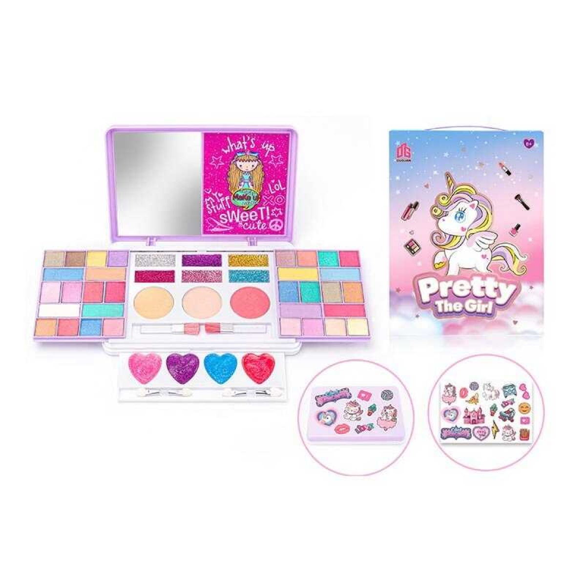 Косметика 2619 K (48) розкладна палетка, тіні, рум“яна, глітер, блиски для губ, 2 пензлики, 2 аплікатори, дзеркальце, наліпки, в коробці