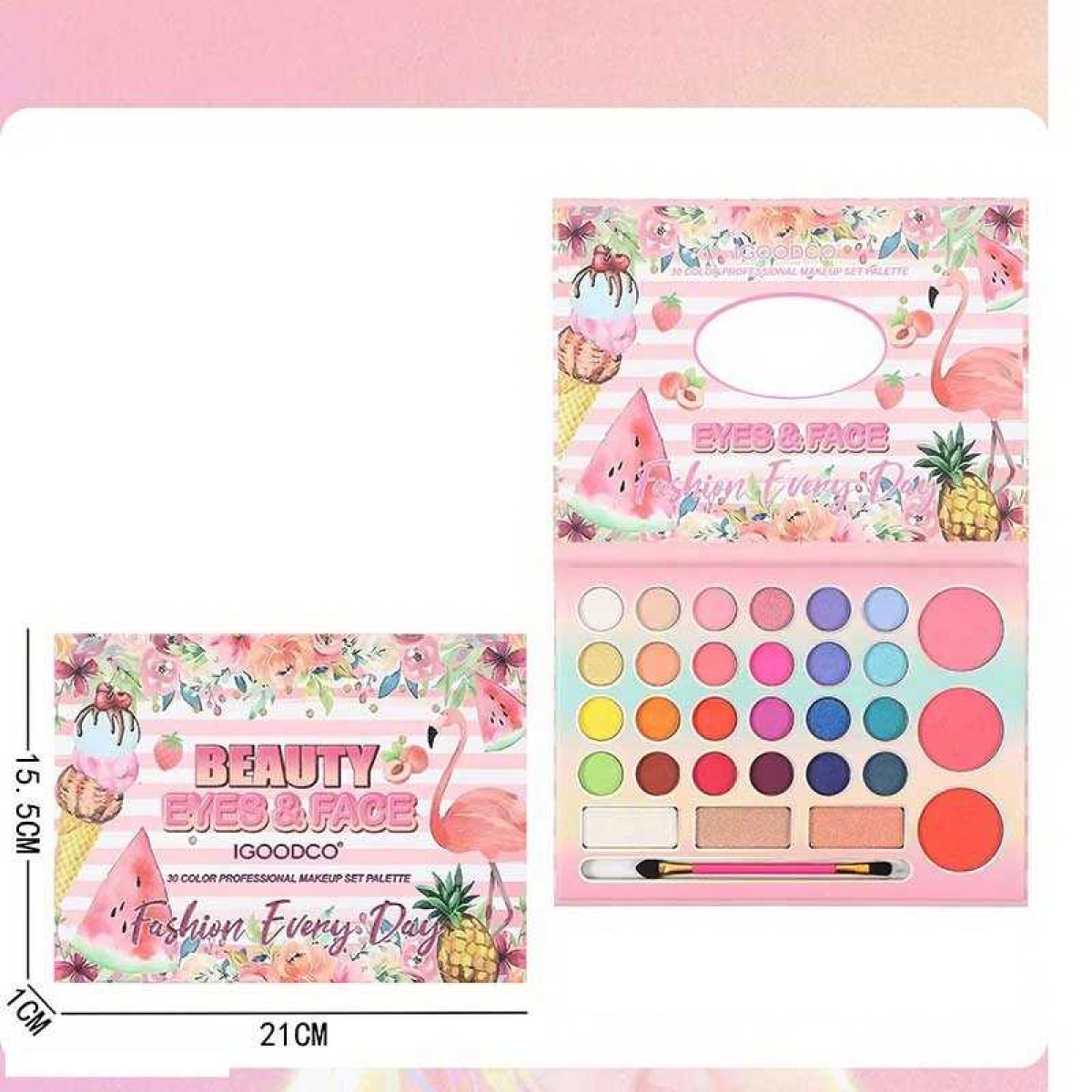 Косметика IG 3086 (144/12) палетка, 30 кольорів, пензлик, дзеркальце, у плівці
