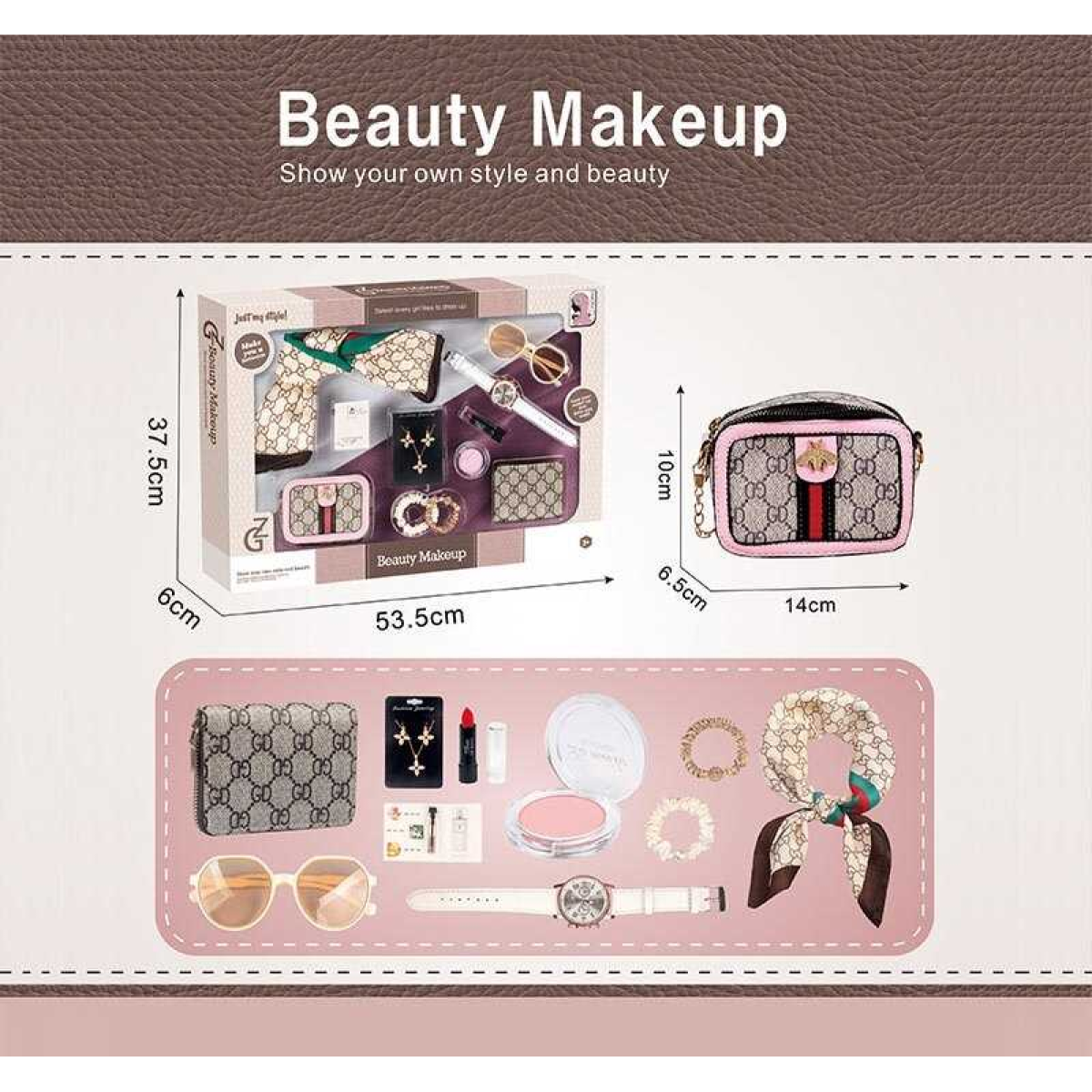 • Набір аксесуарів S 4 (24) сумочка, хустинка, окуляри, годинник, гаманець, пробник парфумів, помада, сережки, підвіска на шию, в коробці