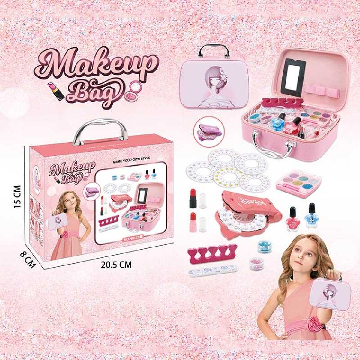 Набір косметики 768-22 (60/2) інструмент для створення зачісок, стрази, глітер, помади, блискітки, лак, в коробці