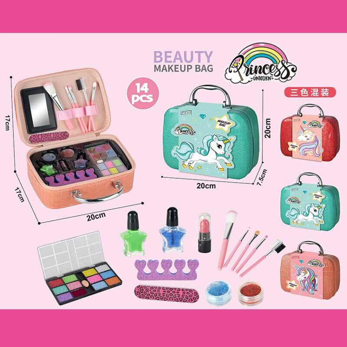 • Набір косметики 768-50 (60/2) палітра тіней, блискітки, лак для нігтів, помада, пензлики, у валізі, ВИДАЄТЬСЯ ТІЛЬКИ МІКС ВИДІВ