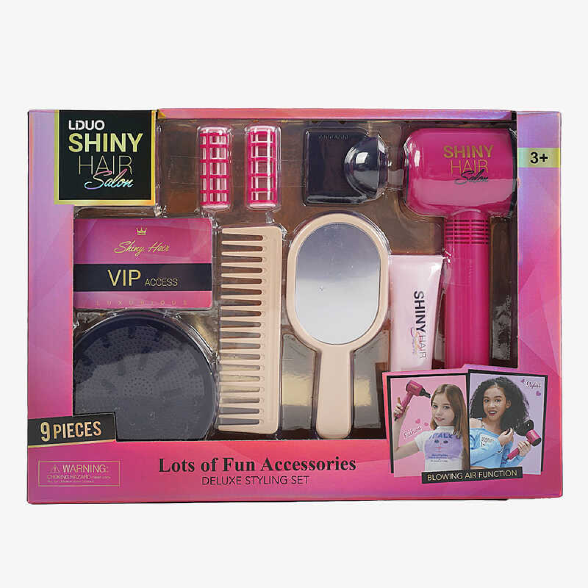 Набір перукаря 626002 (24) 9 аксесуарів, фен видуває повітря, 2 насадки, 2 бігуді, гребінець, люстерко у коробці
