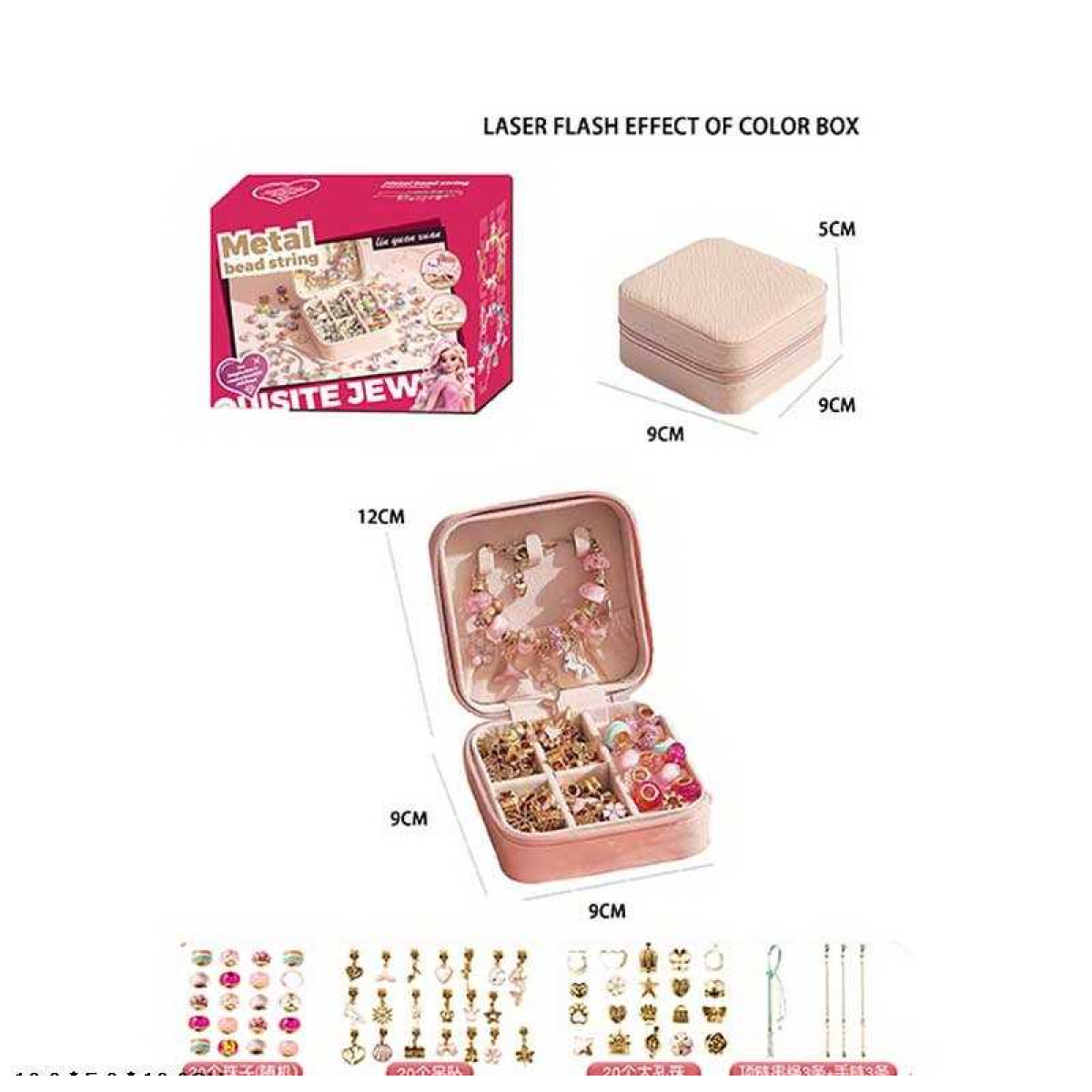 • Набір прикрас 5568-4 A (36) 66 деталей, текстильна шкатулка, 2 види шармів, основи для прикрас, металеві підвіски, в коробці