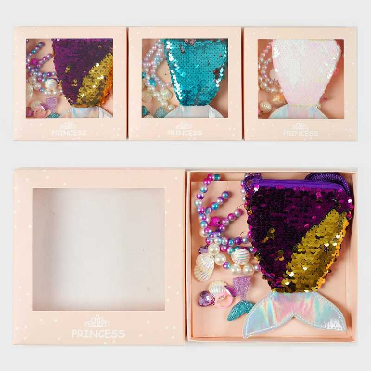 Набір прикрас C 63933 (240) 3 види, сумочка-гаманець, каблучка, намисто, кліпси, браслет, в коробці, ВИДАЄТЬСЯ ТІЛЬКИ МІКС ВИДІВ
