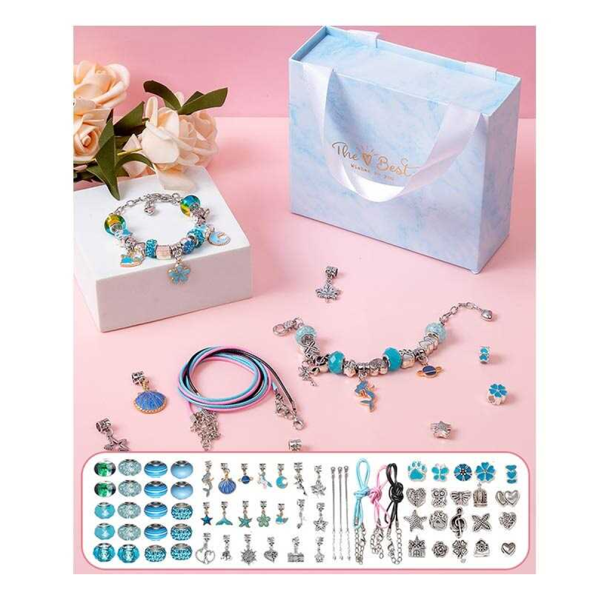 Набір прикрас DLS 1103 (100) “Блакитний бокс“, основи для браслетів, намистини, підвіски, в коробці
