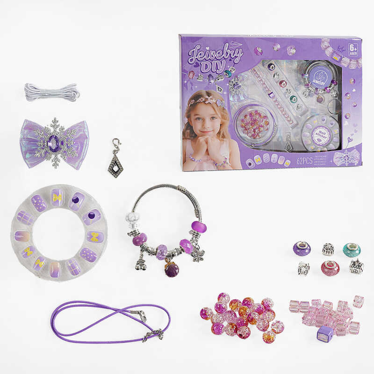 Набір прикрас PX 66086 (72/2) 62 елементи, основи для прикрас, шарми, намистинки, кулон, заколка, нігті, в коробці