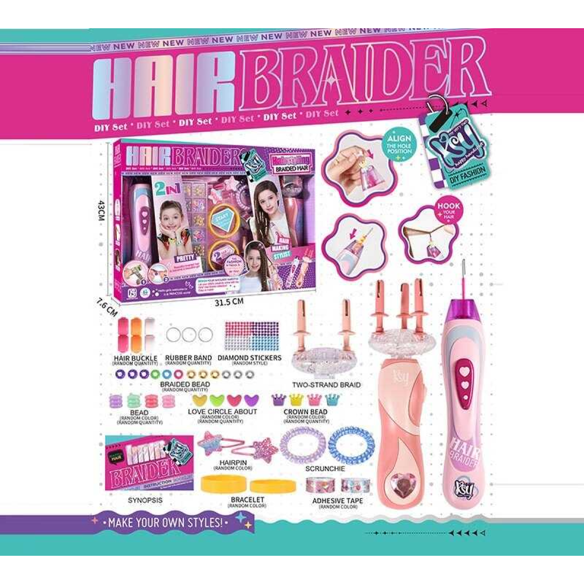 Набір стиліста KSY 961 (24/2) механічний прилад для нанизування бусин, автоматична машинка для накручування волосся, 2 насадки, декоративний скотч, резинки, заколки, браслети, в коробці