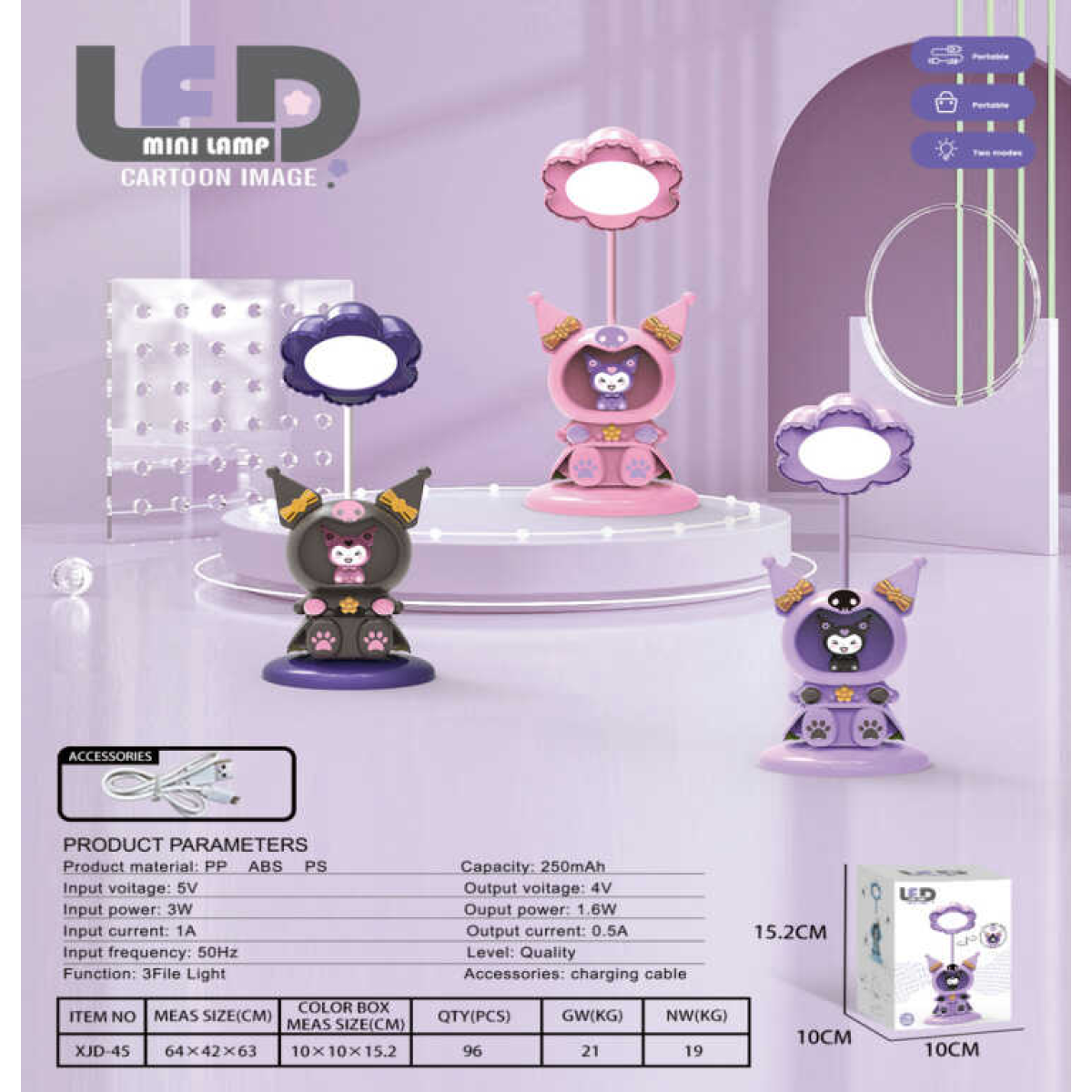 Лампа настільна світлодіодна C 71600 (96) 3 кольори, герой, вбудований акумулятор, нічник, стругачка, Type-C, в коробці, ВИДАЄТЬСЯ ТІЛЬКИ МІКС ВИДІВ