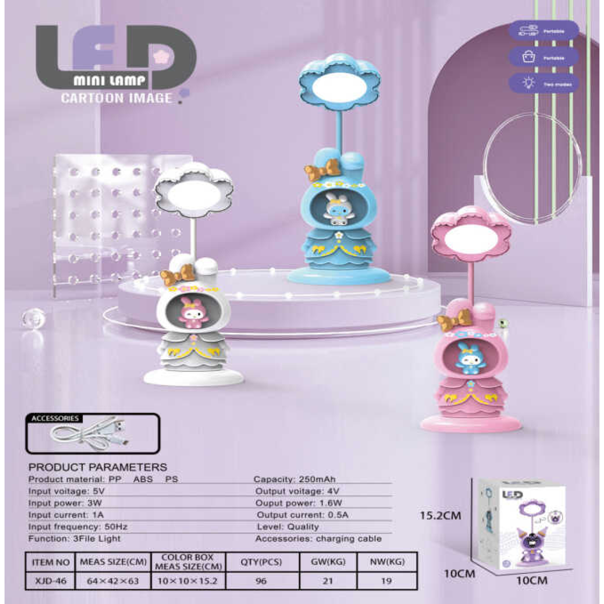 Лампа настільна світлодіодна C 71601 (96) 3 кольори, герой, вбудований акумулятор, нічник, стругачка, Type-C, в коробці, ВИДАЄТЬСЯ ТІЛЬКИ МІКС ВИДІВ