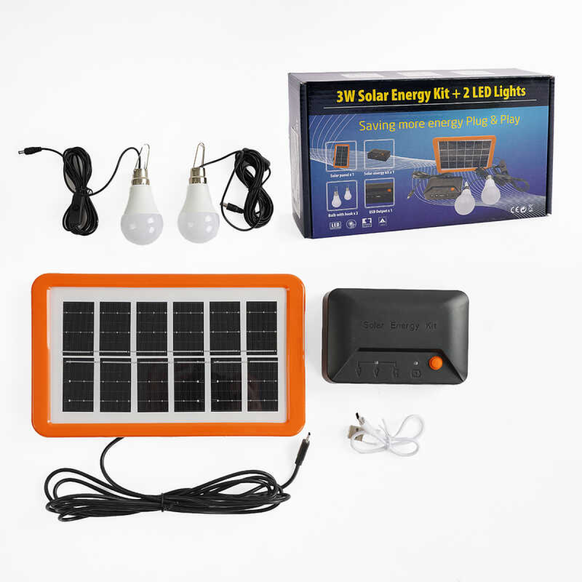 Зарядна станція С 68427 (20) сонячна панель, потужність 3 Вт, 2 LED-лампи по 150 LM з вимикачами, акумулятор 3.7 V 4000 mAh, кабель USB Type-C, у коробці