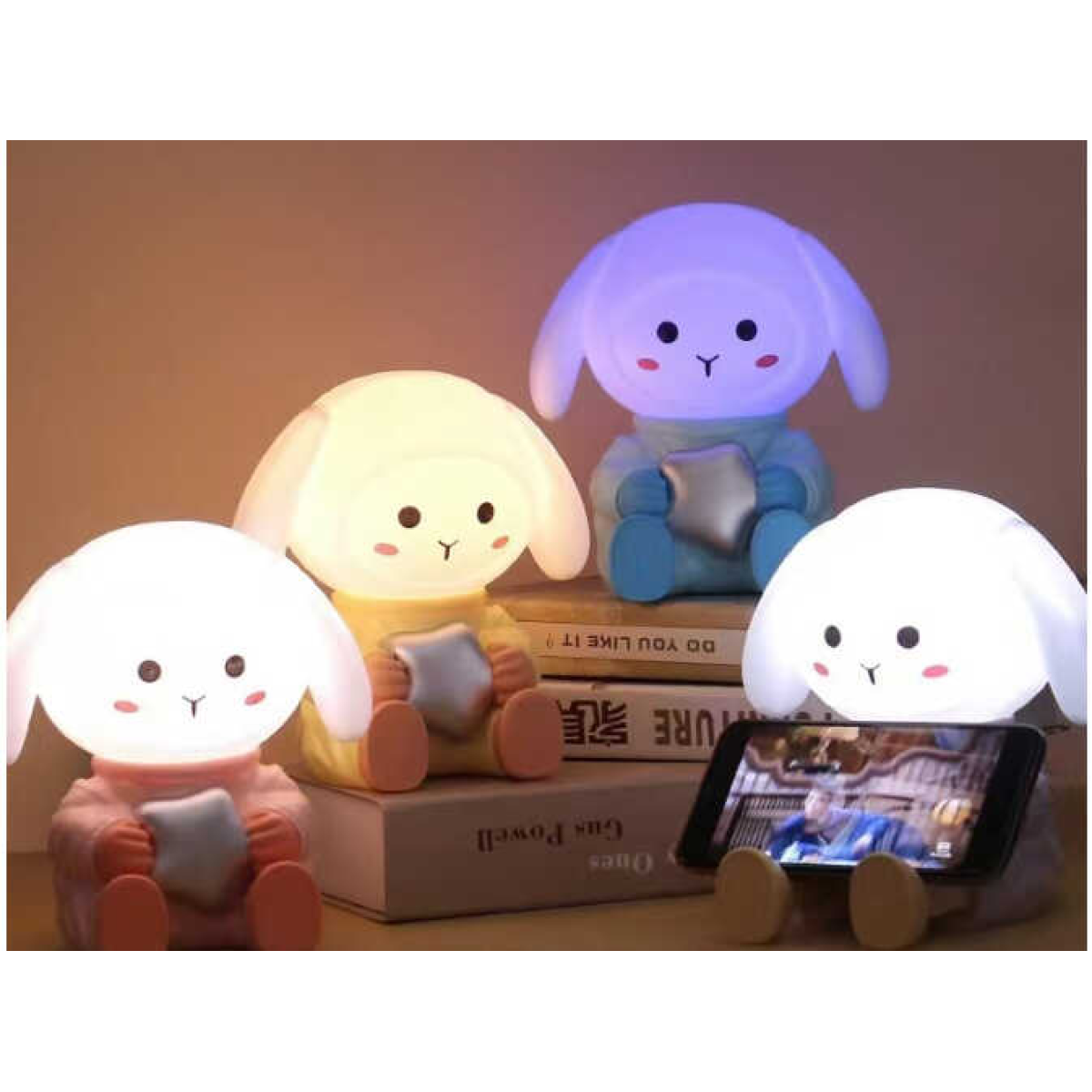Нічник C 71572 (72) “Зайчик космонавт“, вбудований акумулятор, USB кабель, 4 режими підсвічування, висувні ніжки, підставка для телефону, в коробці, ВИДАЄТЬСЯ МІКС