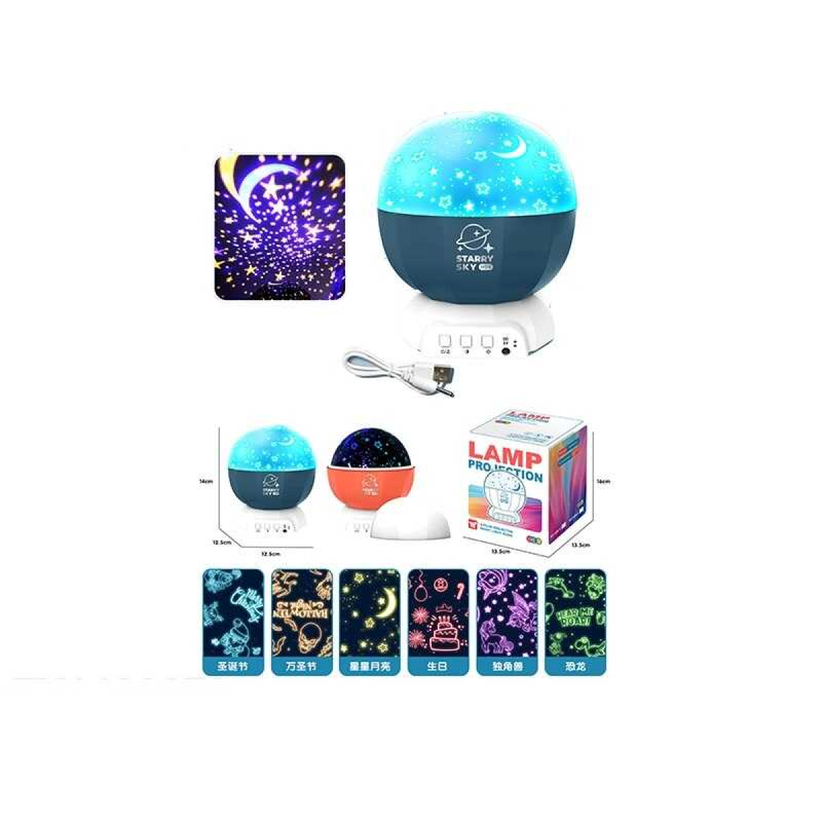 Нічник-проєктор 168 K-W (48/2) звук, підсвічування, 3 насадки для проєктора, обертається, зміна кольорів, від батарейок та від мережі, USB-кабель, в коробці