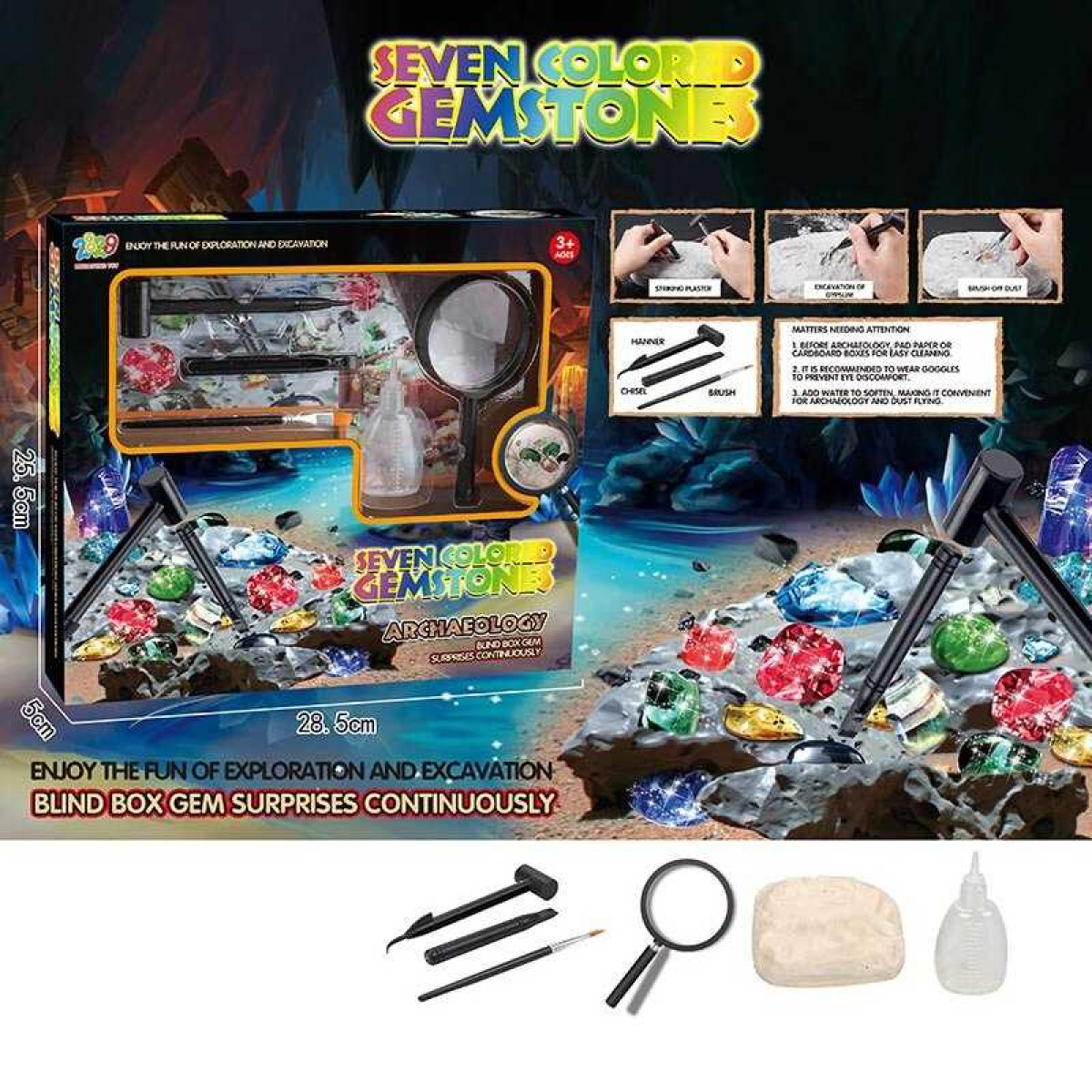 Розкопки 1112 C+ (48) гіпсовий блок, інструменти, збільшувальне скло, пляшечка для води, в коробці