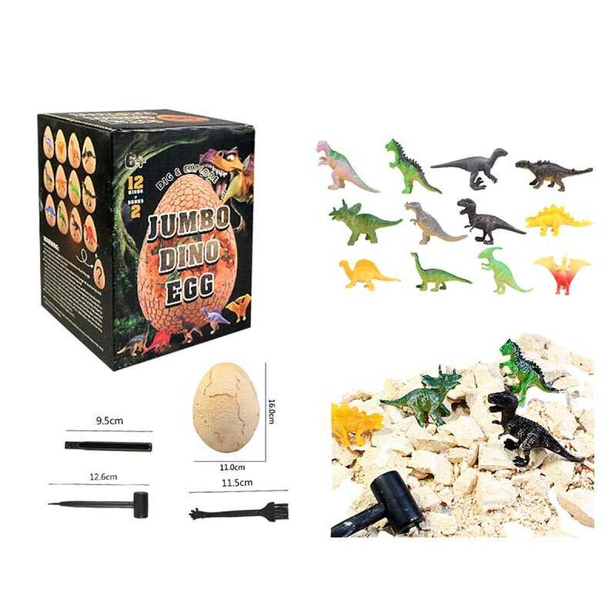 Розкопки BKG 012 (30) 12 фігурок + 2 бонусні, 12 карток з динозаврами, молоток, щітка, долото, баночка, в коробці