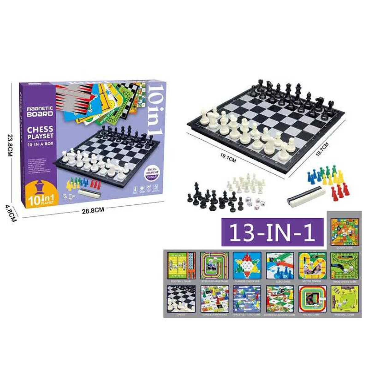 Гра 2612 A (36/2) 13в1, магнітна дошка, ігрові поля, ігрові елементи, шахи, шашки, лудо, автоперегони, змії та драбини, футбол, бейсбол, в коробці