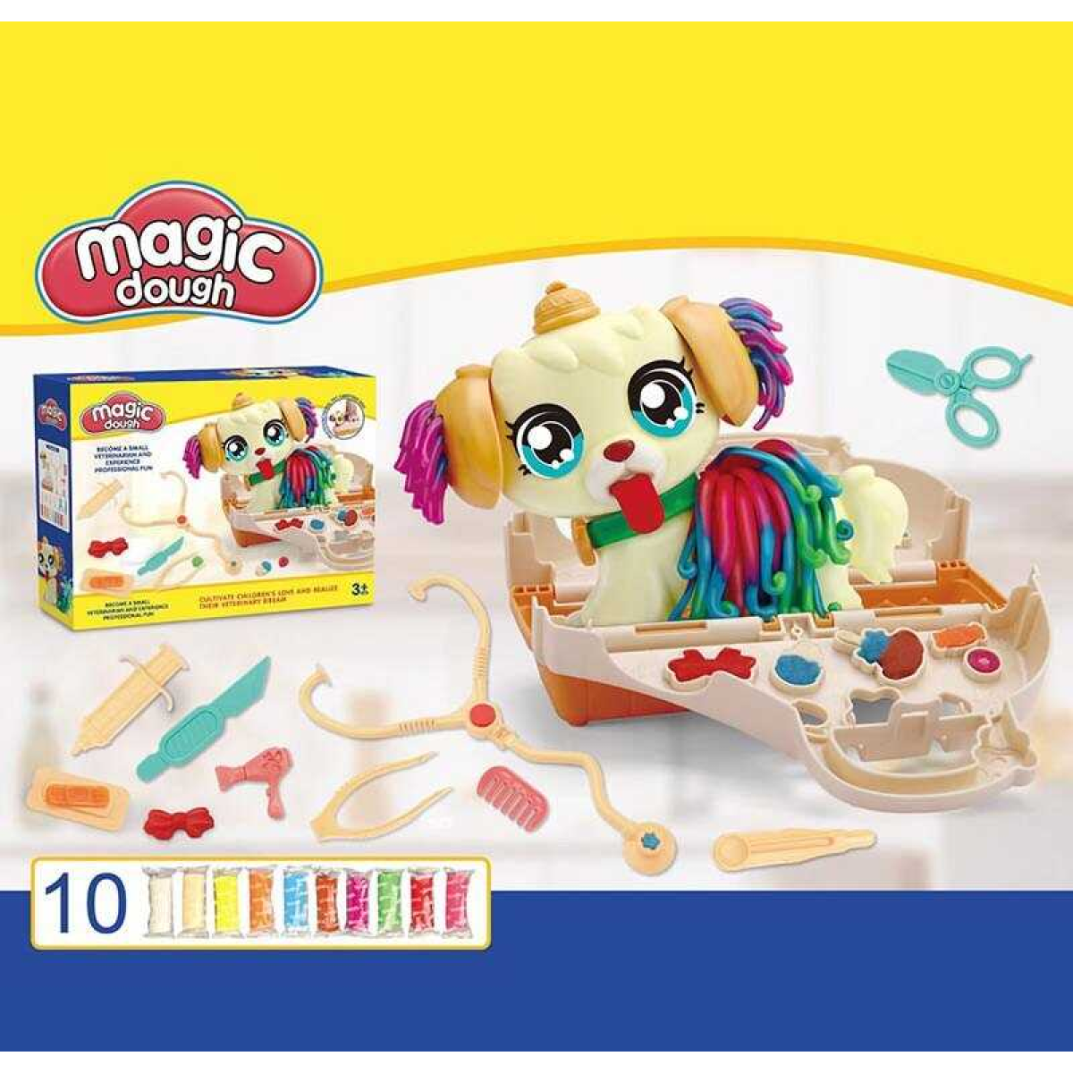 Тісто для ліплення 8636 (36/2) екструдер-песик, медичне приладдя, переноска, 9 кольорів тіста, в коробці