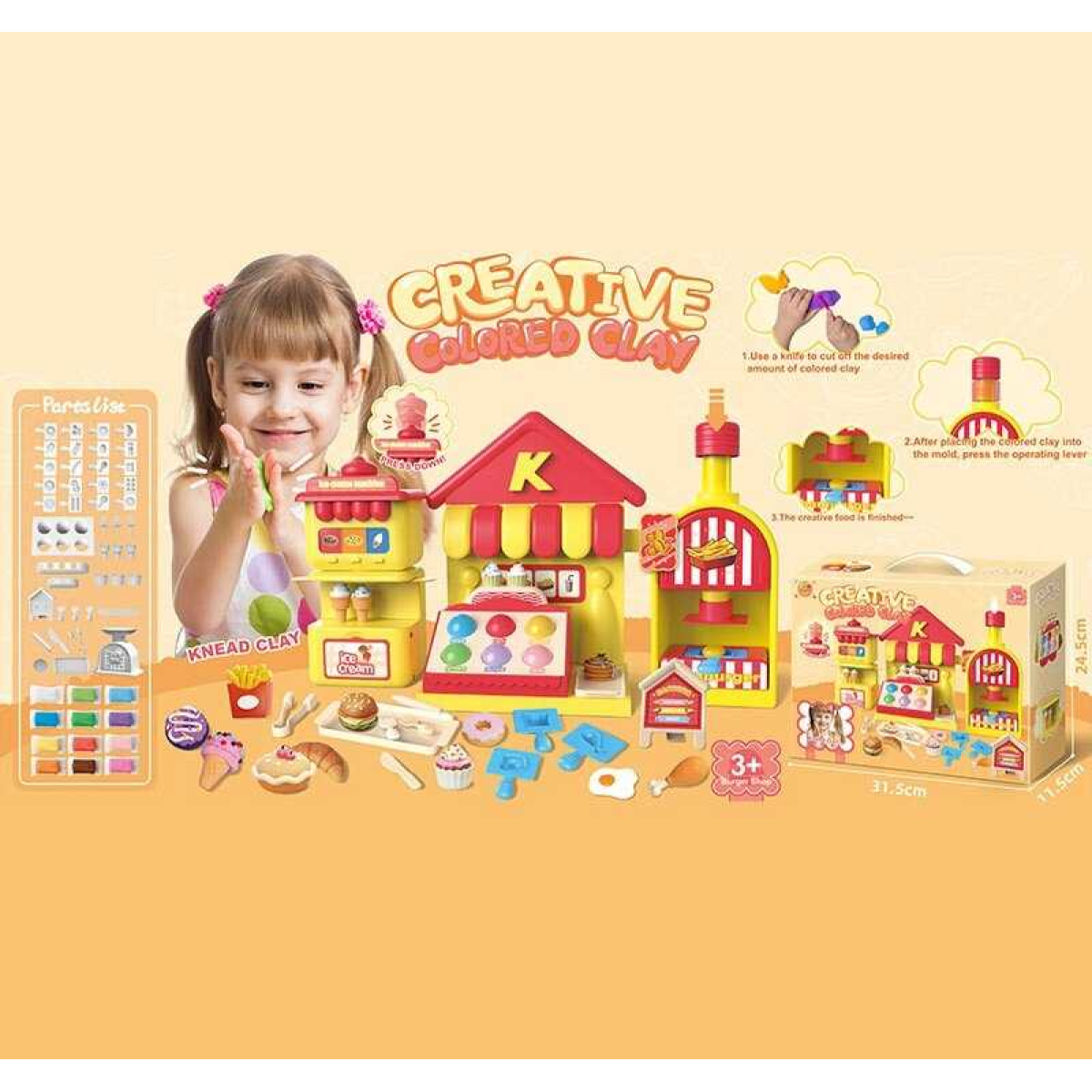 Тісто для ліплення 8902 (18) прес, 12 кольорів тіста, посуд, форми, наліпки, в коробці