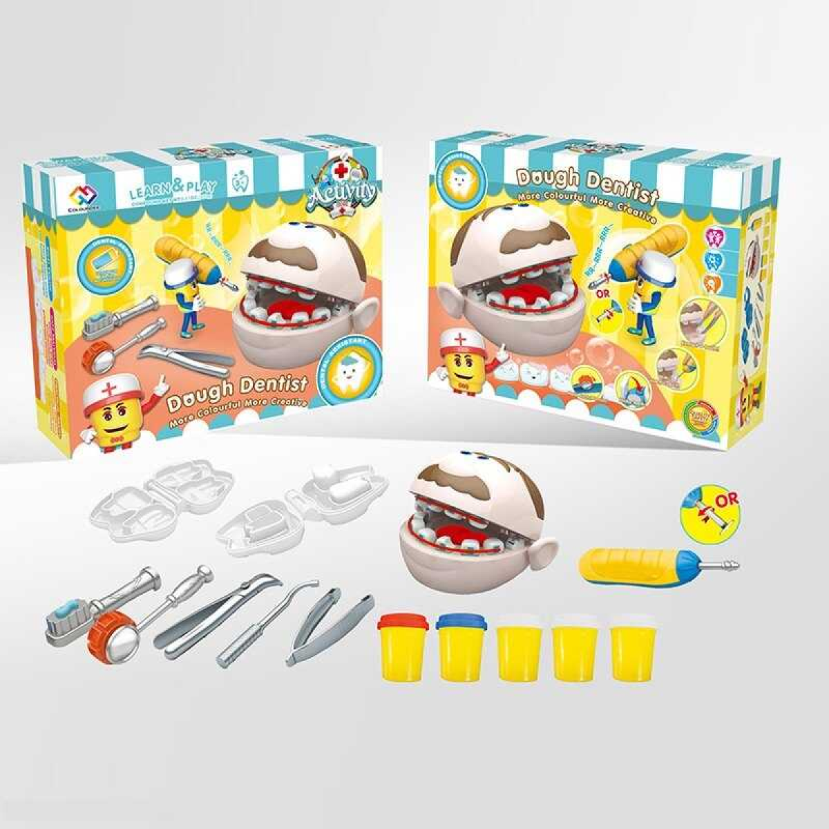 Тісто для ліплення ZY 88 (24/2) “Стоматолог“, бормашина обертається, щелепи чоловічка, інструменти, 5 баночок тіста, 2 форми для ліплення, в коробці