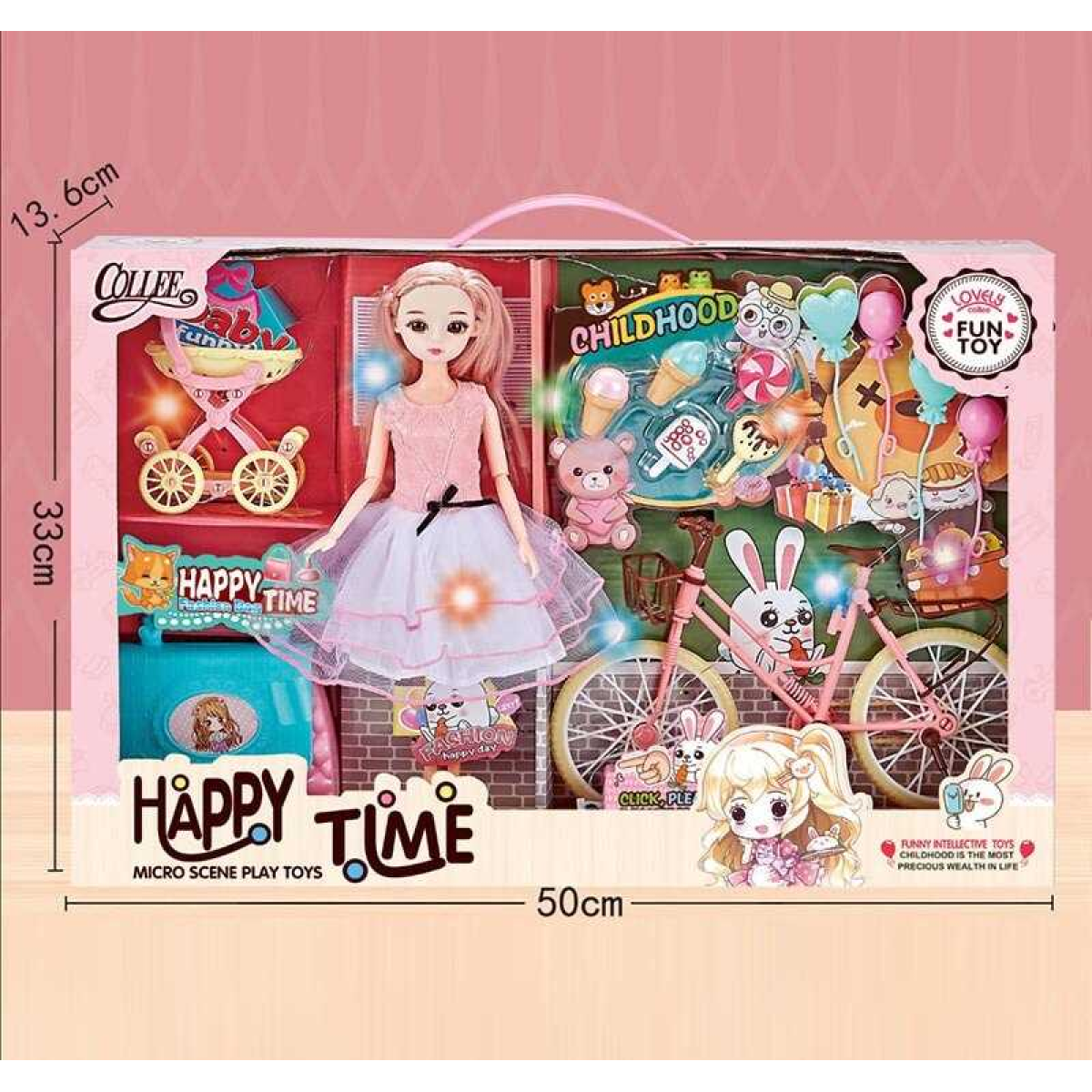 Лялька 2027-13 (18) 30 см, шарнірні суглоби, імітація скляних очей, підсвічування, аксесуари, велосипед, в коробці