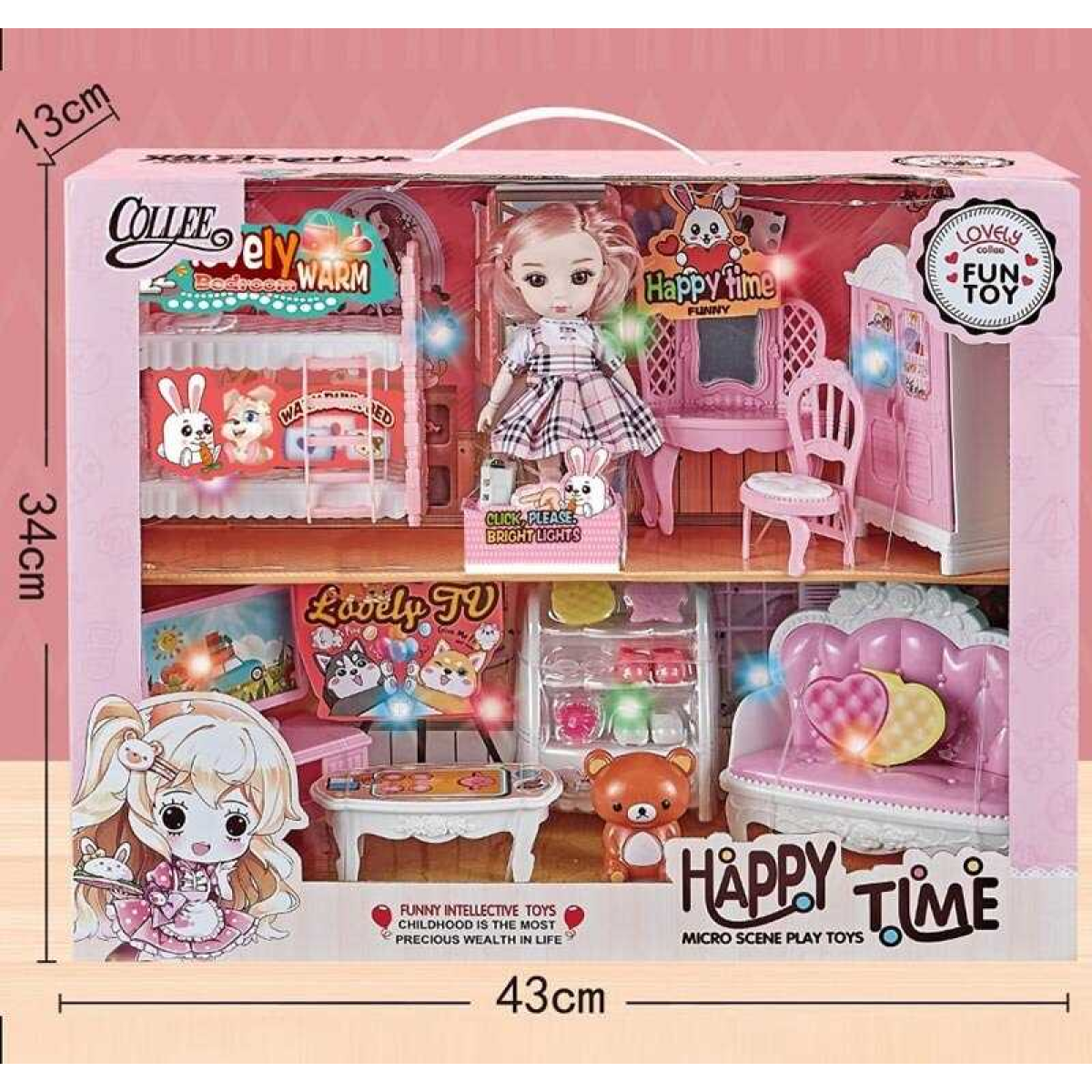 Лялька 2027-17 (18) 15 см, шарнірні суглоби, імітація скляних очей, підсвічування, меблі, аксесуари, в коробці