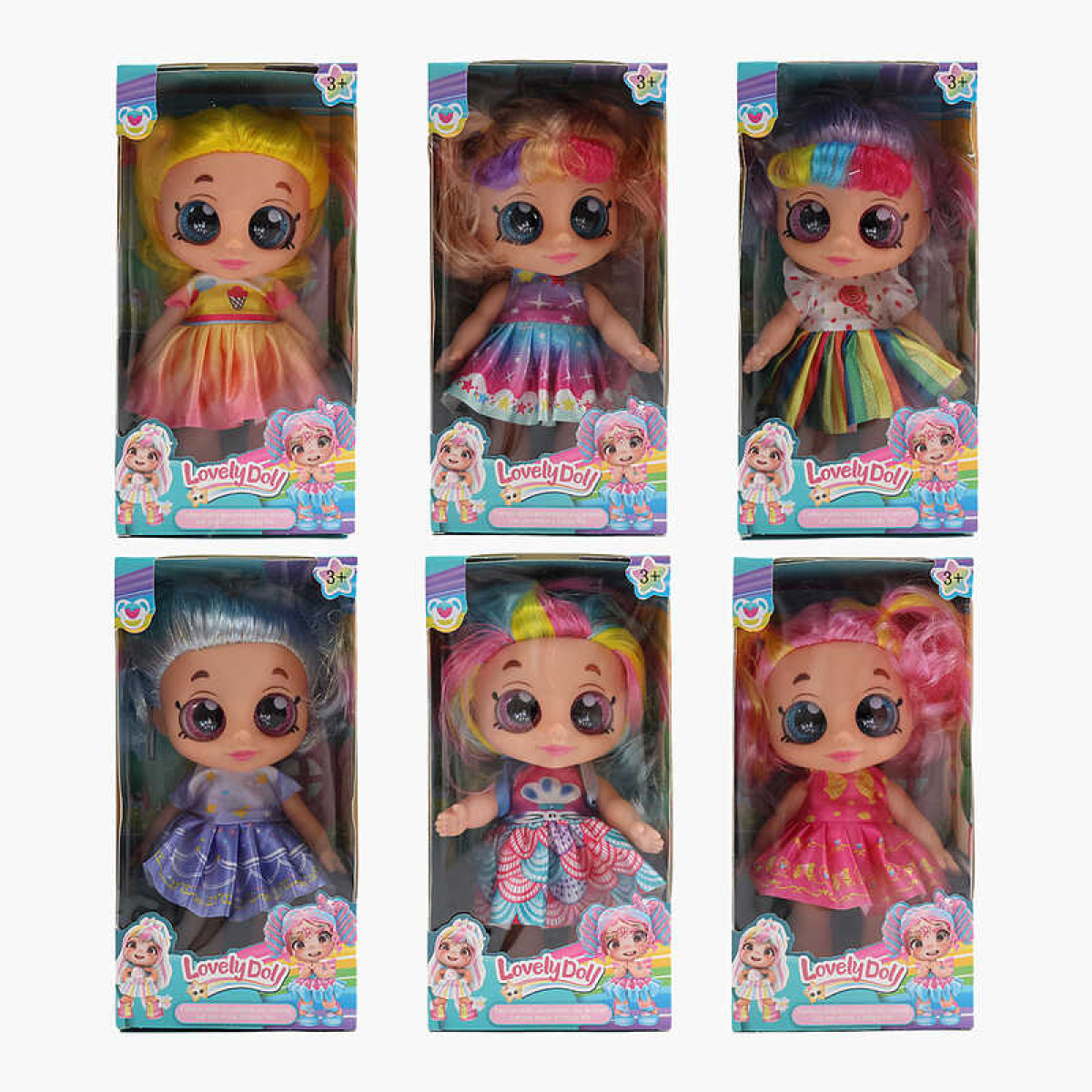 Лялька 212 A (120/2) 6 видів, висота 22см, підсвічування, весела пісенька, гумова голова і кінцівки, знімний одяг, в коробці, ВИДАЄТЬСЯ МІКС