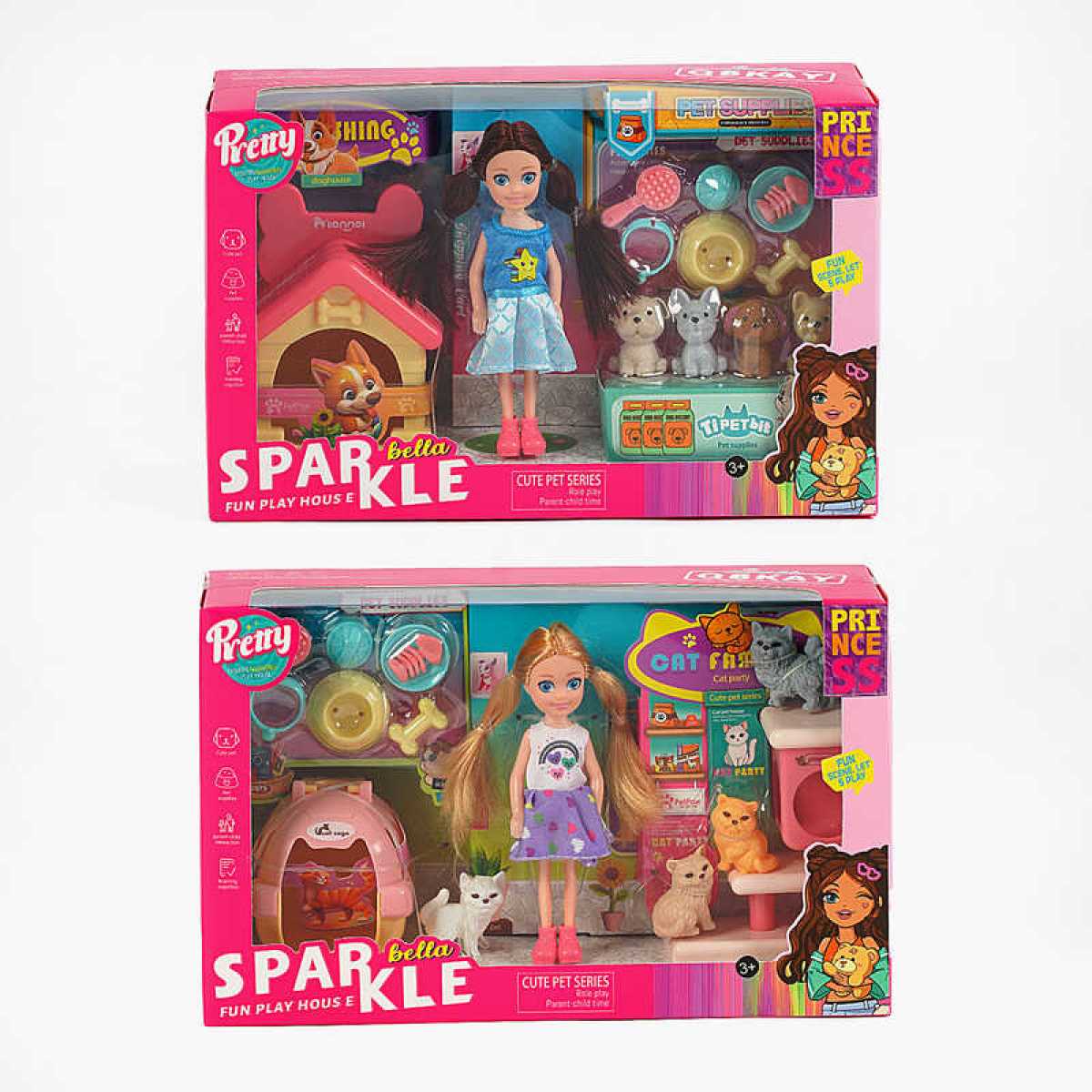 Лялька 7018 (48) 2 види, висота 13 см, 4 улюбленці, аксесуари по догляду за тваринками, в коробці