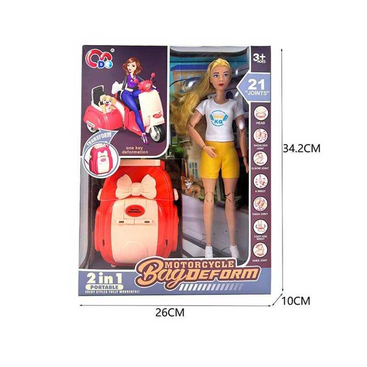 Лялька JJ 8722 (30/2) висота - 29 см, мопед трансформується у рюкзак, рухомі суглоби, улюбленець, в коробці