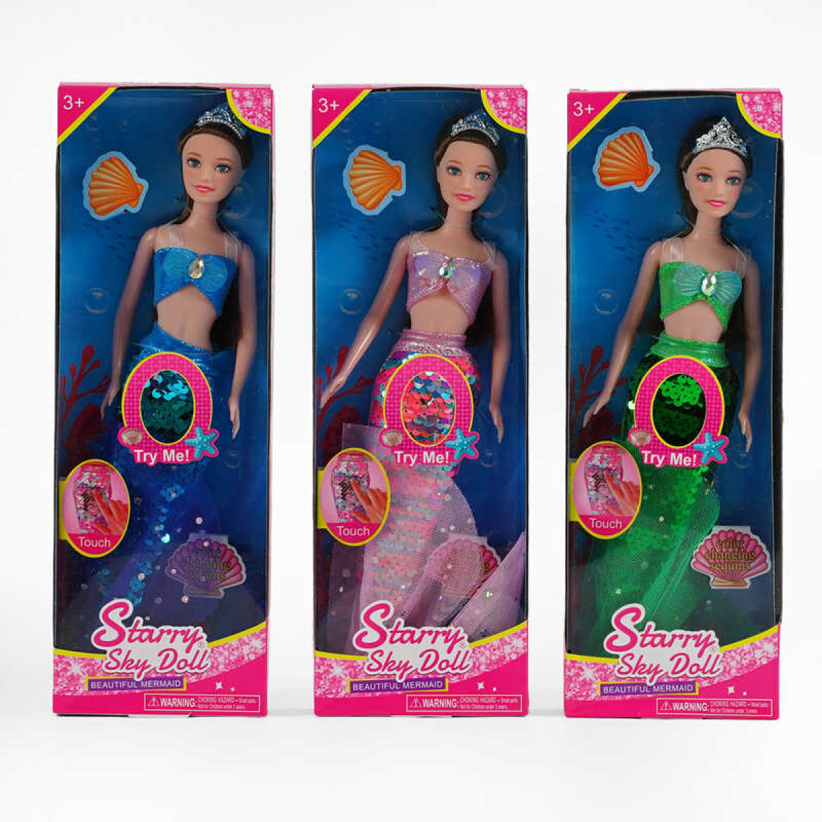• Лялька SK 029 (144/2) 3 види, русалка, хвіст з двосторонніх паєток, в коробці, ВИДАЄТЬСЯ ТІЛЬКИ МІКС ВИДІВ
