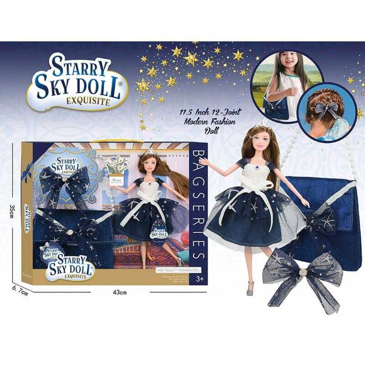 Лялька SK 032 A (24/2) висота 30 см, шарнірні суглоби, аксесуари, знімне взуття, сумочка, прикраса для волосся, в коробці