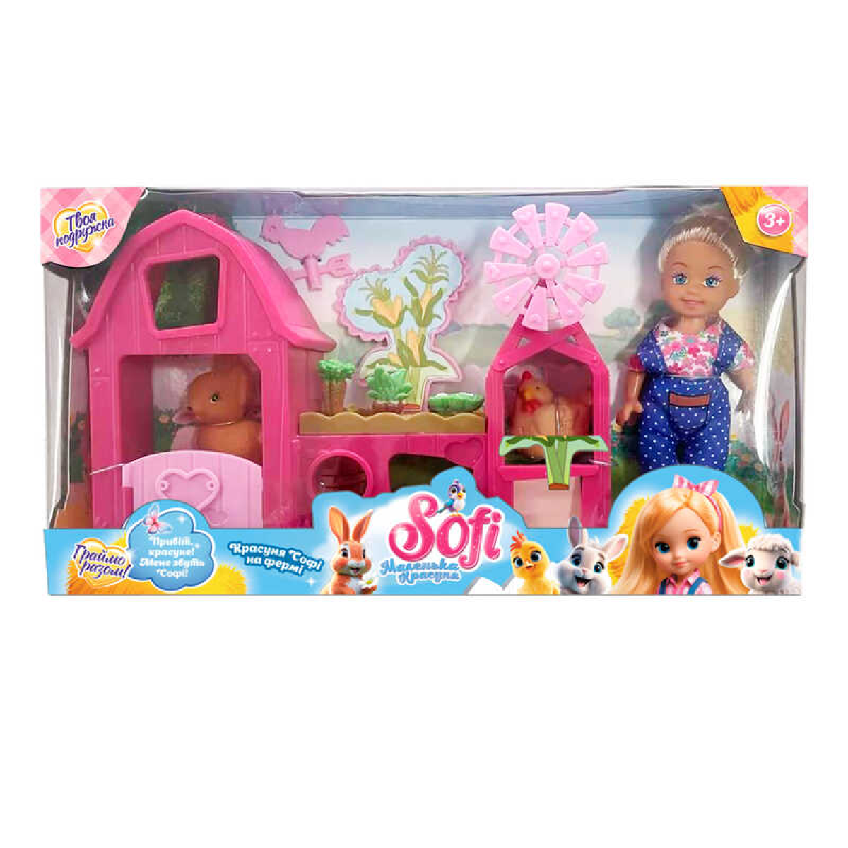 • Лялька Sofi 49430 (72/2) “На фермі”, висота ляльки 11 см, будиночок, фігурки тварин, в коробці
